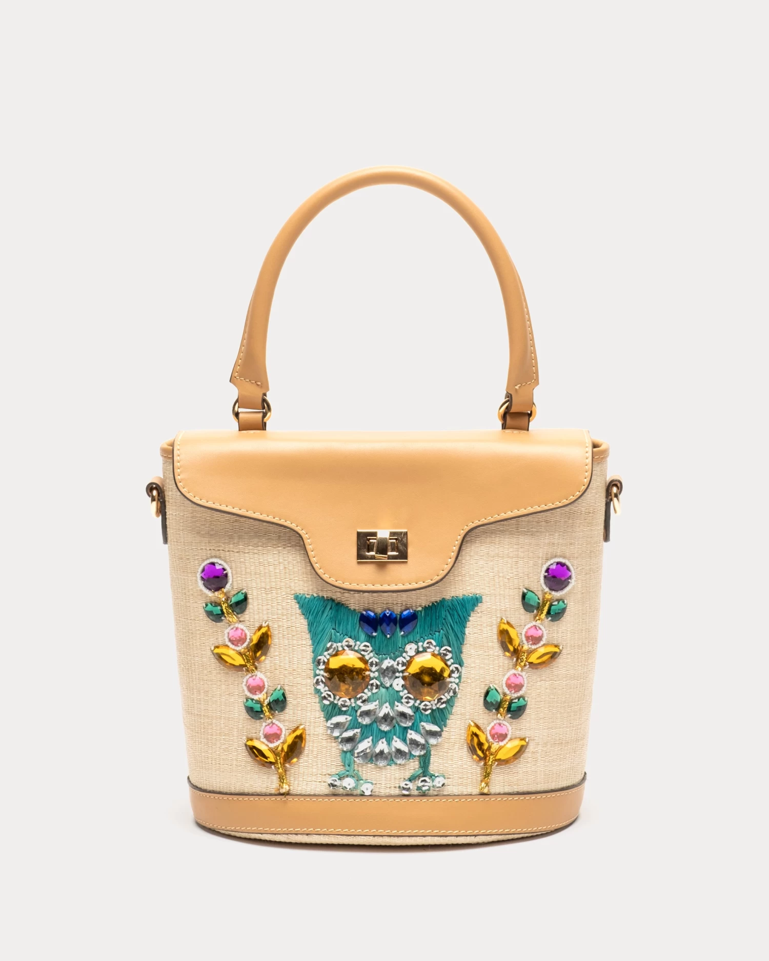 We designed our Agatha Basket as a canvas for glamorous embroidery, creating an everyday handbag as fashionable as it is functional. With a colorful bird motif and bold gem decals embellishing the structured fabric frameāAgatha has smooth leather edges and a fold-over top with metal clasps for safe keeping of your essentials. Adjust the straps for versatile wear on this eye-catching centerpiece.