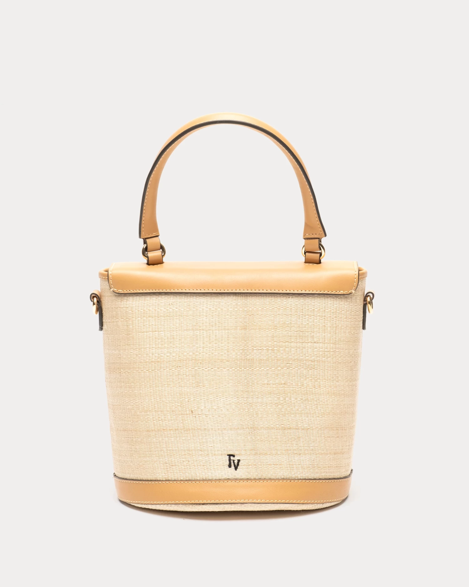 Embroidered canvas basket with leather detailing. Metal clasp closure.Ā Interior zip pocket. Cotton twill lining. Detachable and adjustable crossbody strap.Ā