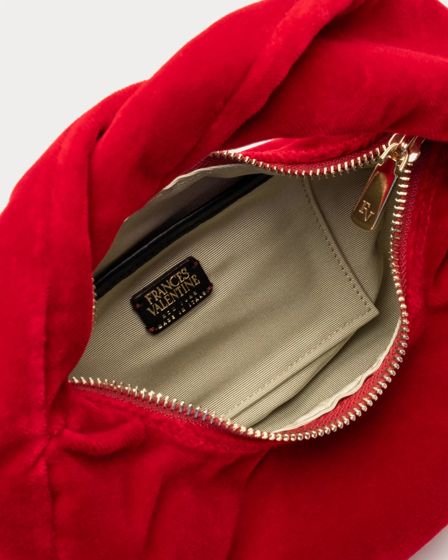 Velvet mini bag. Interior slip pocket. Cotton twill lining.