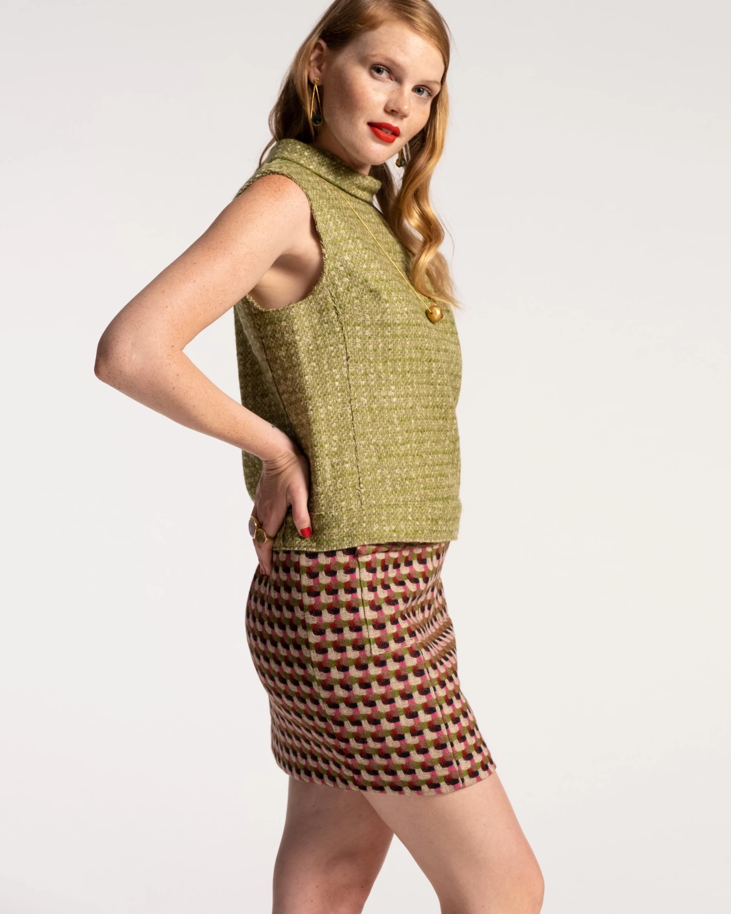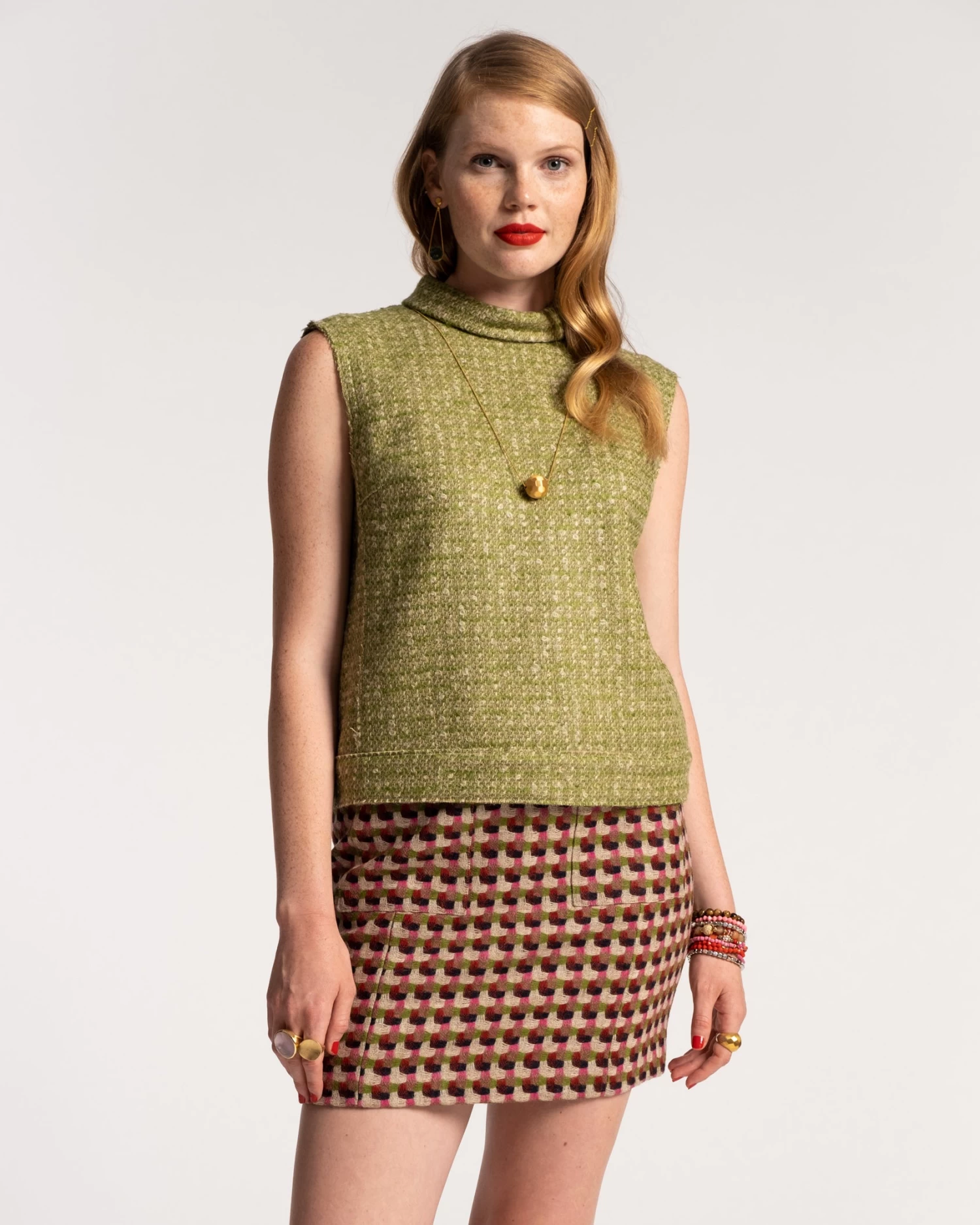 Our Colette Shell is crafted in wool for a luxurious take on one of our favorite styling pieces. It features a classic sleeveless silhouette and is lined. Paired on its own with or underneath one of our many sweaters, the Colette Shell is a versatile wardrobe staple.