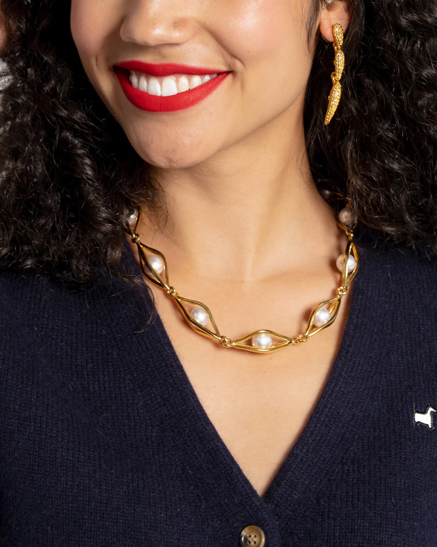 Introducing the Collegiate Sweater, a v neck cardigan styled after Palm Spring golf sweaters. What makes this sweater special is the feminine vintage style placket, tortoise shell buttons, and our FV scotty patch.