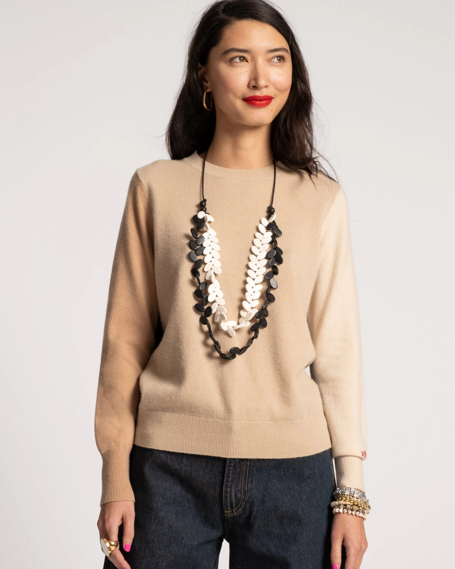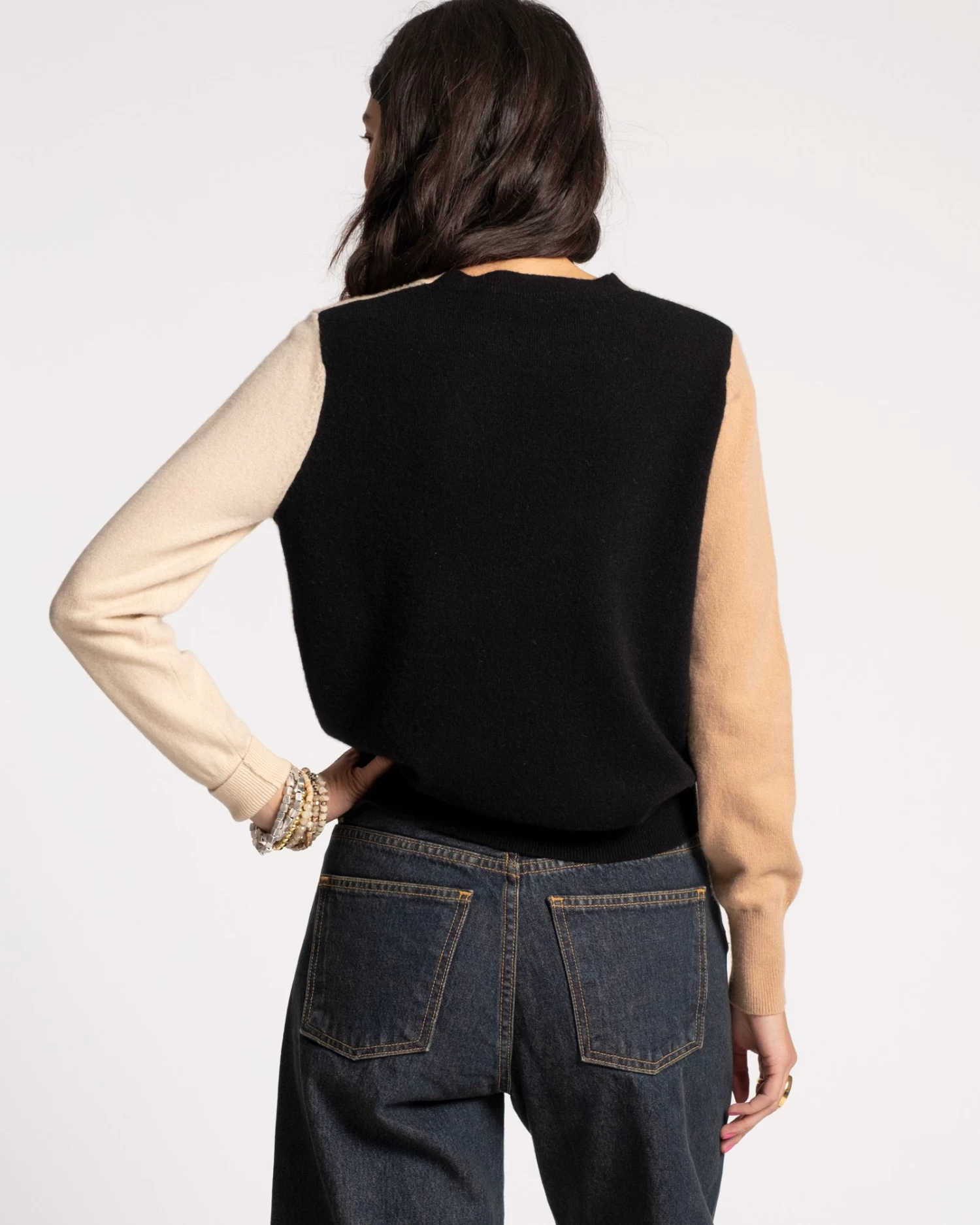 Color therapy. Our new Colorblock Crewneck is a classic sweater silhouette with a slim fit and soft touch. A wool-cashmere-nylon blend designed in vivid, segmented colors – this piece promises mood-boosting style. Continue to play with color and pair her with a bright pair of flats or matching accessories!