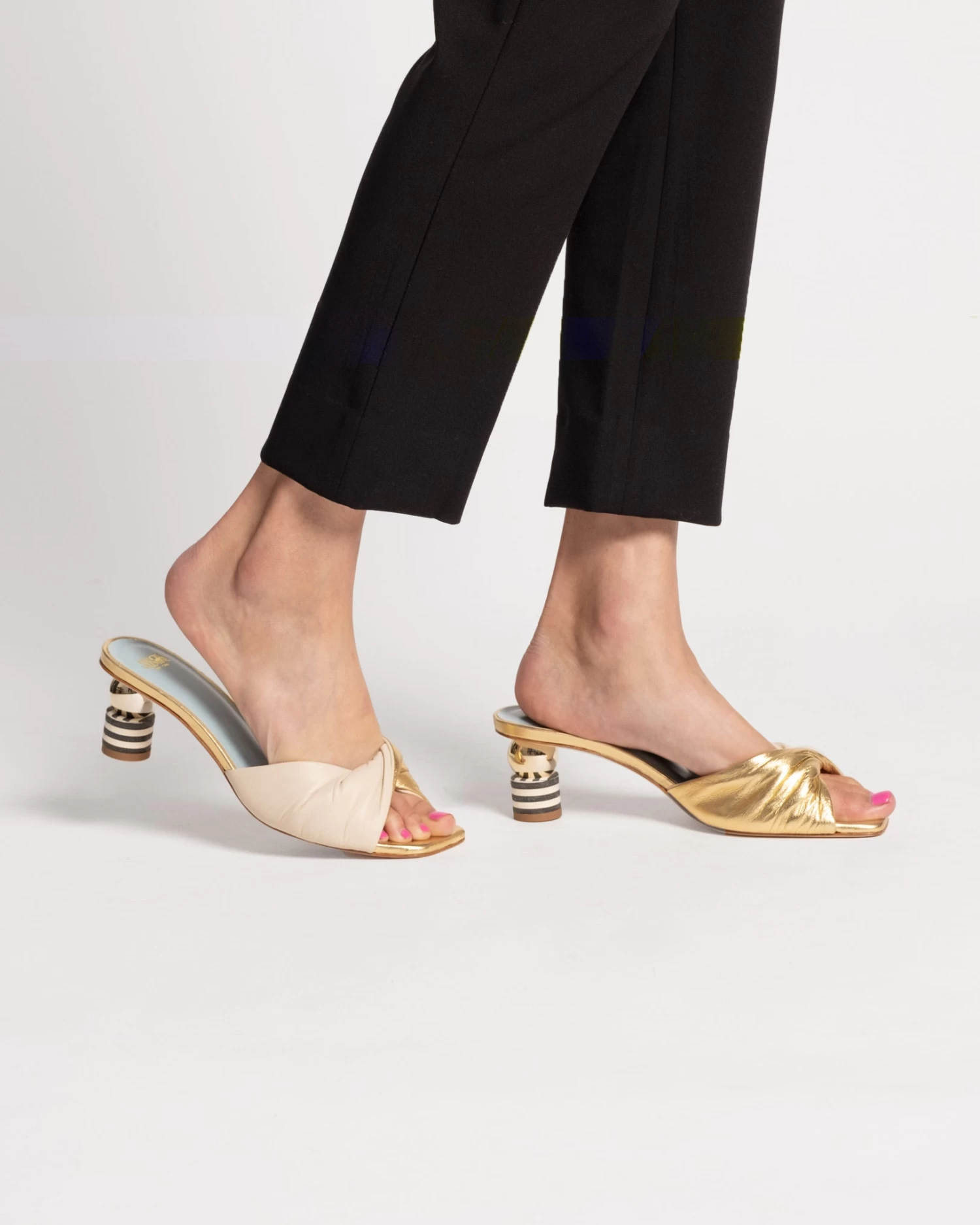 Just for kicks! Our Farah Twisted Kickball Heel is an open-toed sandal with a vintage-inspired block heel and uniquely twisted leather frame. Designed in supple nappa glove leather in striking contrast colors, Farah adds elegance to slip-on style – perfect for day or evening affairs, beautifully paired with any outfit.