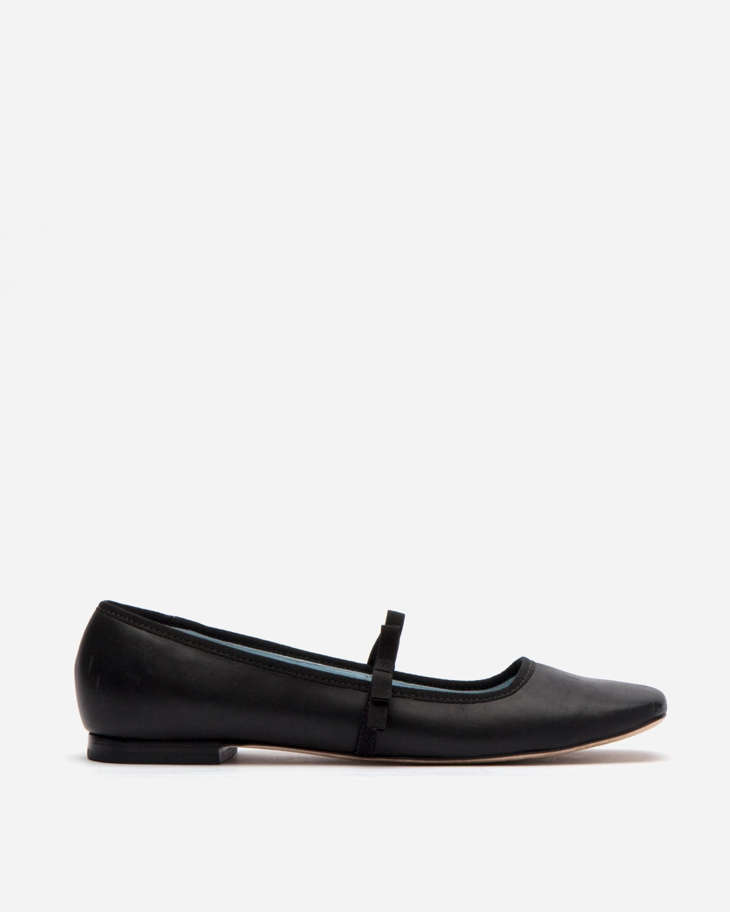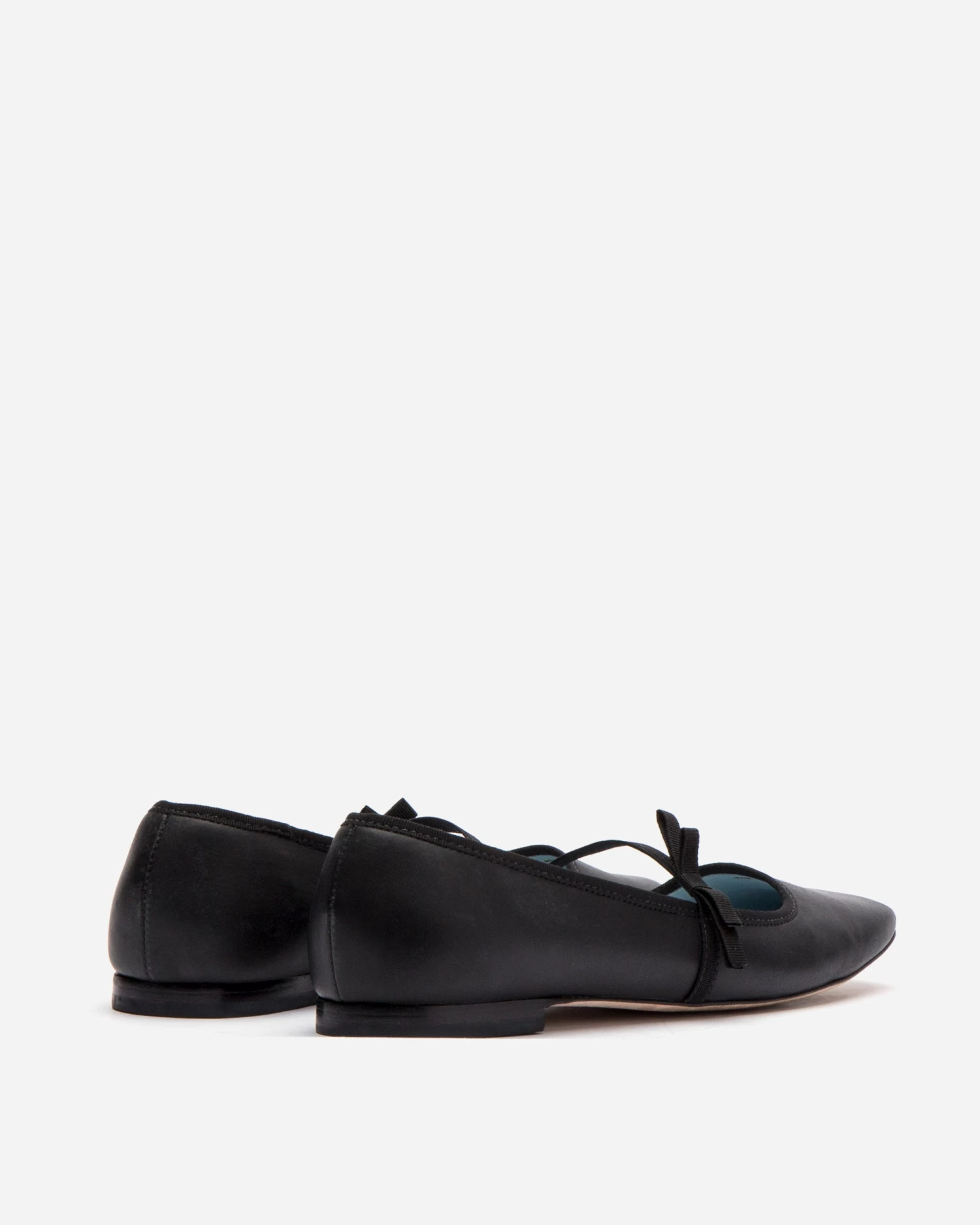 Calfskin leather with elastic bow strap. Squared toe. Leather sole.