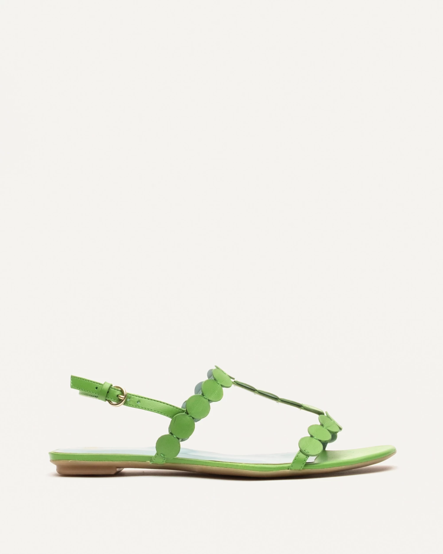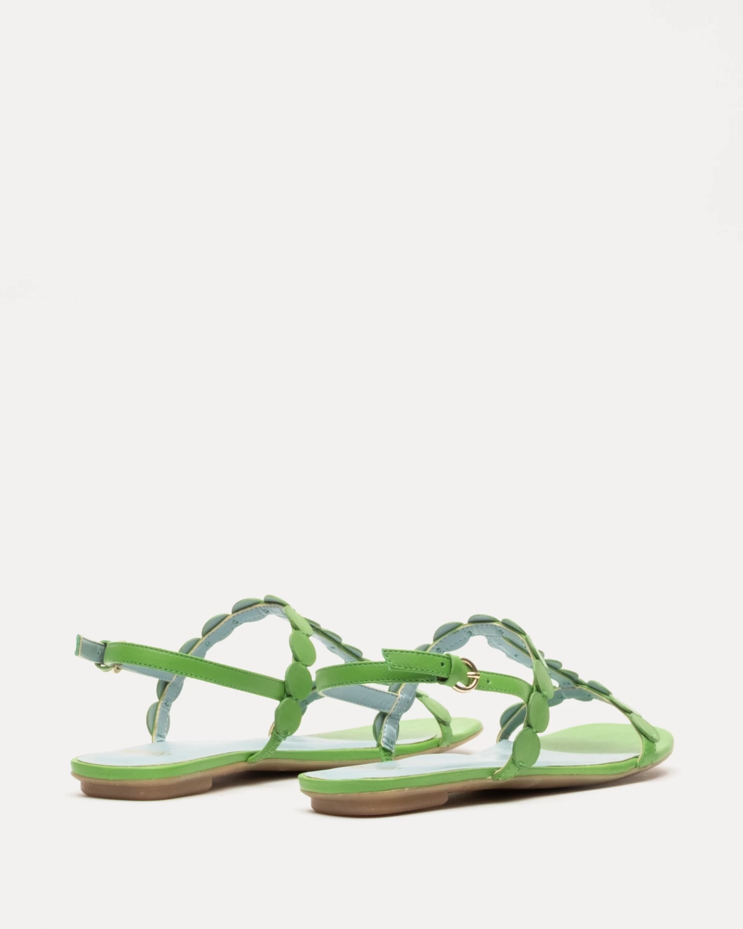 Style on the dot with our Kiki Mini Dot Flat. A classic three-strap design with bright colors, circular leather details, and adjustable fit at the heel – this sandal is perfect for adding flare to casual everyday looks.