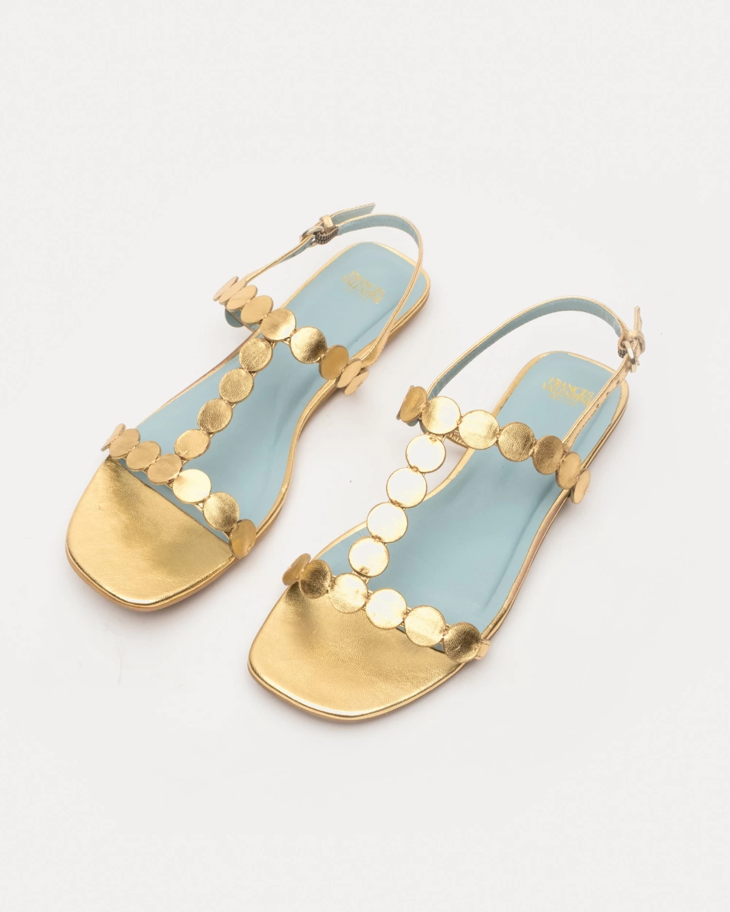 Style on the dot with our Kiki Mini Dot Flat. A classic three-strap design with bright colors, circular leather details, and adjustable fit at the heel – this sandal is perfect for adding flare to casual everyday looks.