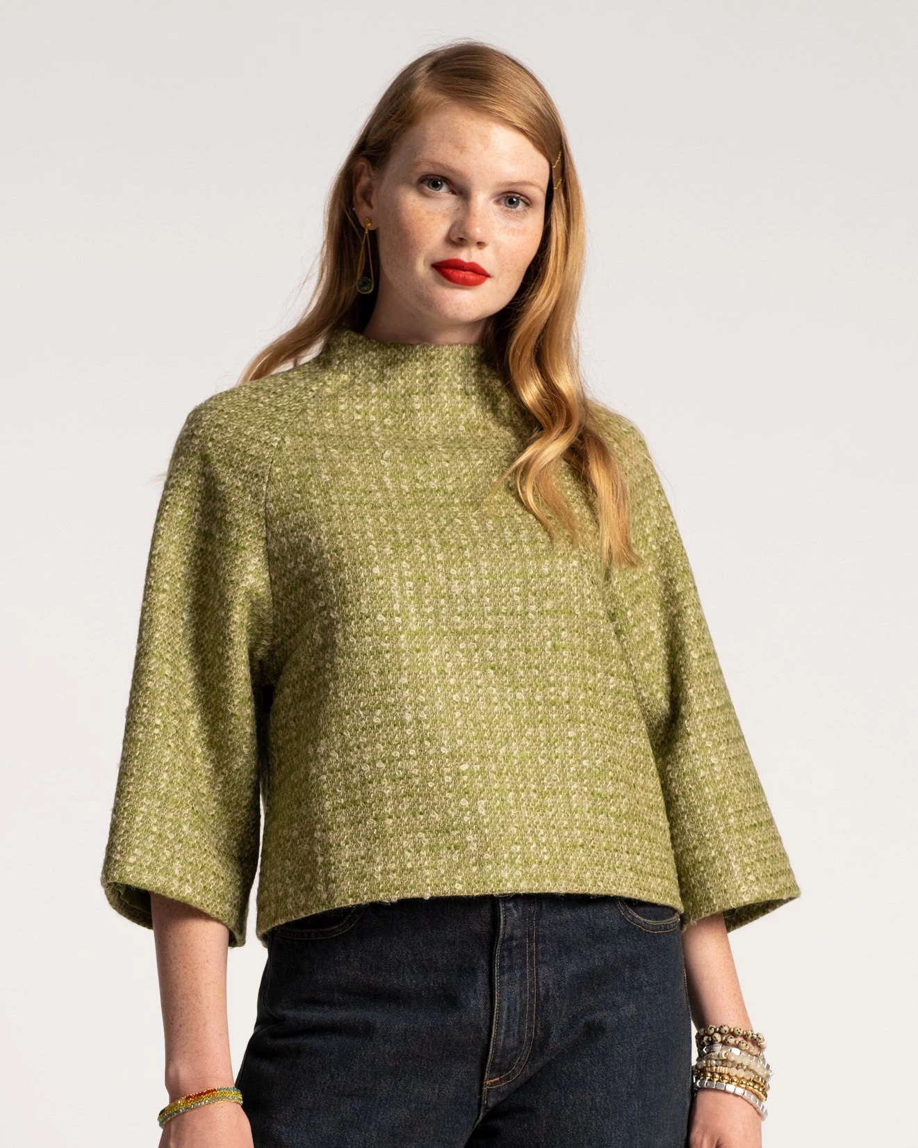 The Lily Funnelneck Top features a boxy fit and loose sleeves, making it a fabulous contrast to a pair of slim-fitting, high-waisted pants. This top is nothing short of a classic.