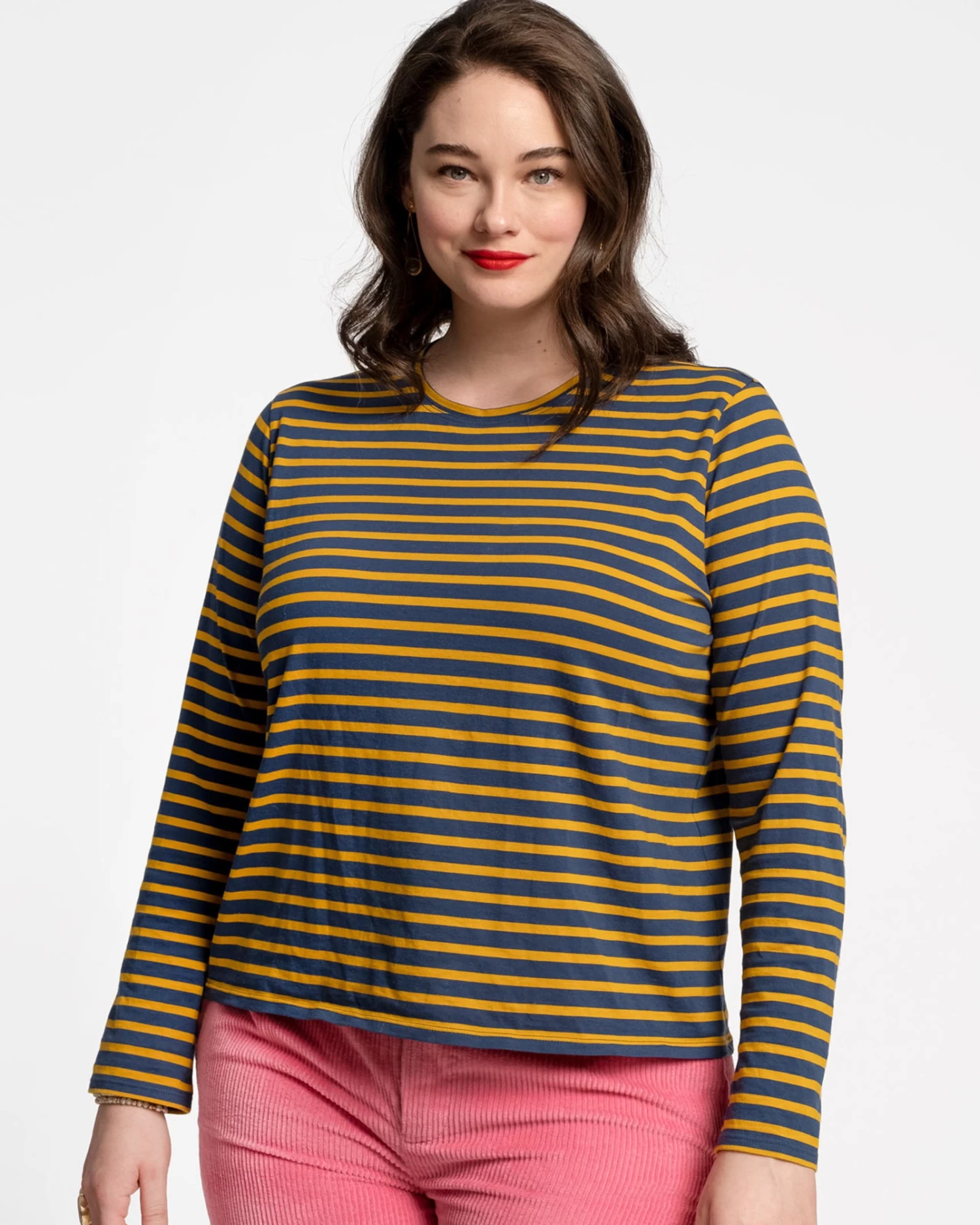 Our fan-favorite Long Sleeve Striped Tee is constructed in soft pima cotton, and is a great layering piece for chillier days or paired on its own with our Jane Cords for that effortlessly chic look.
