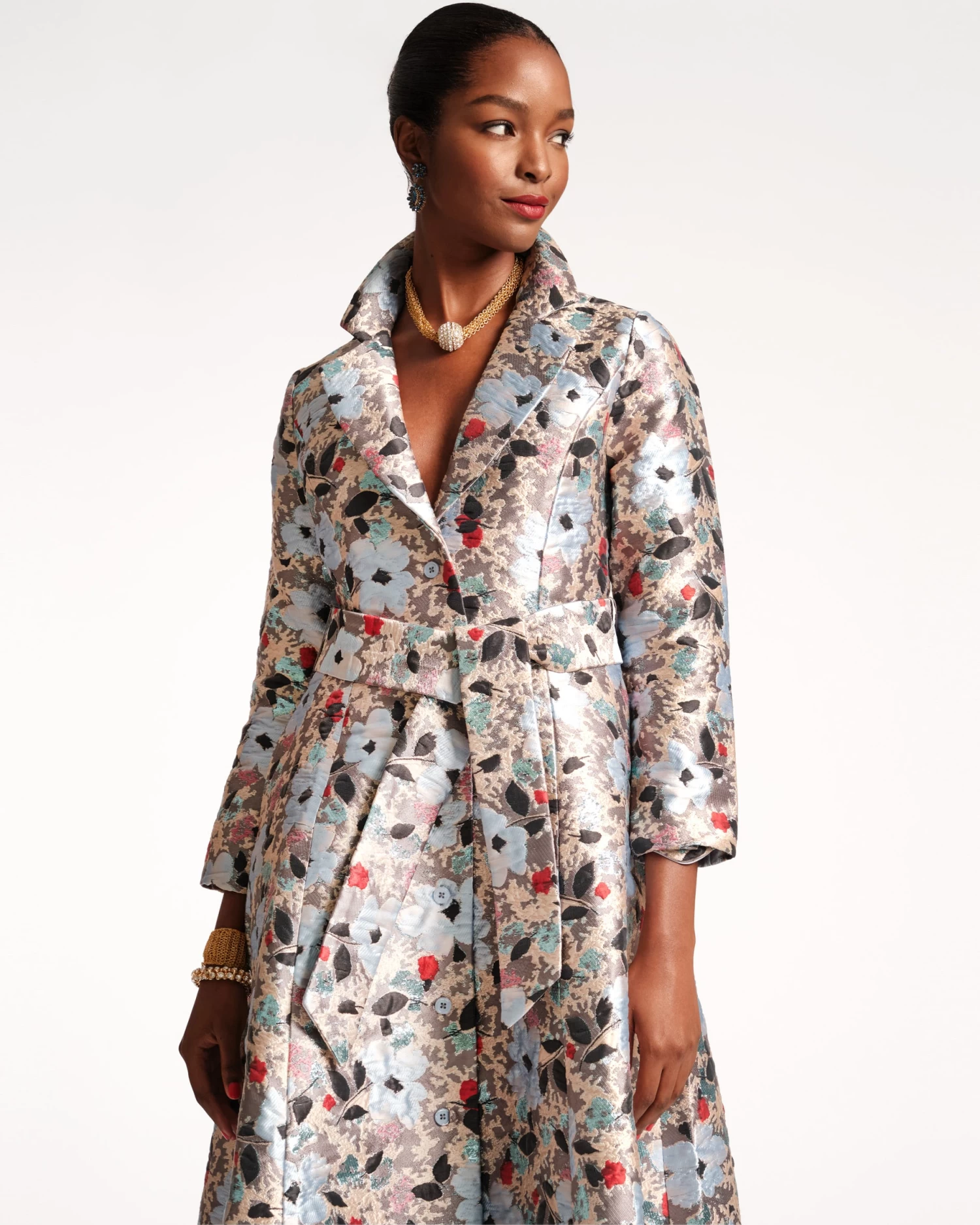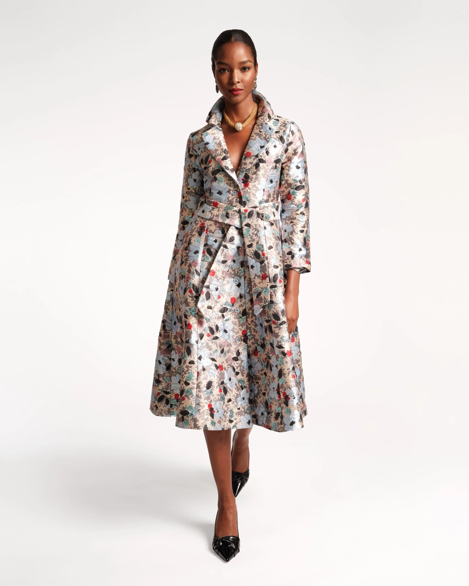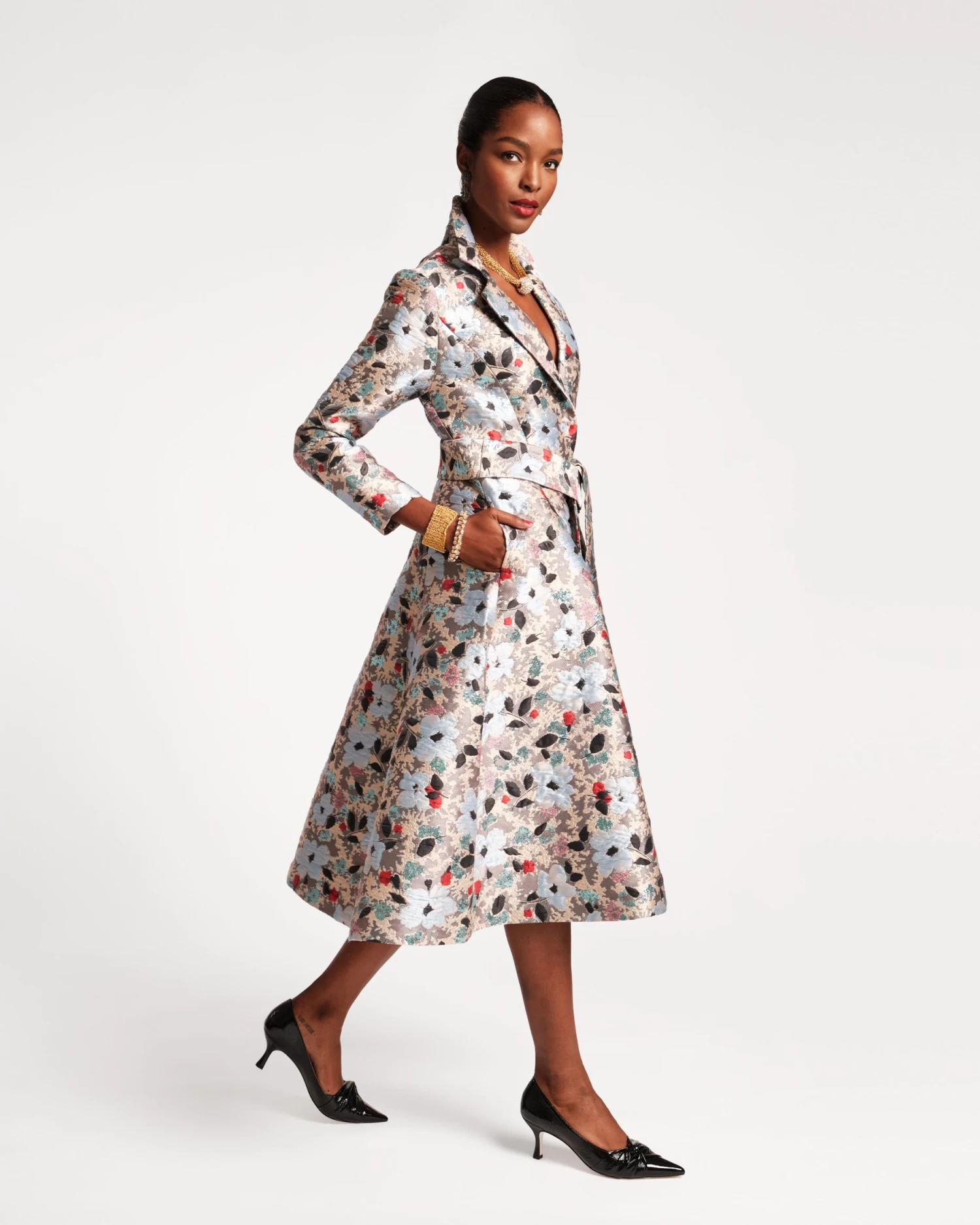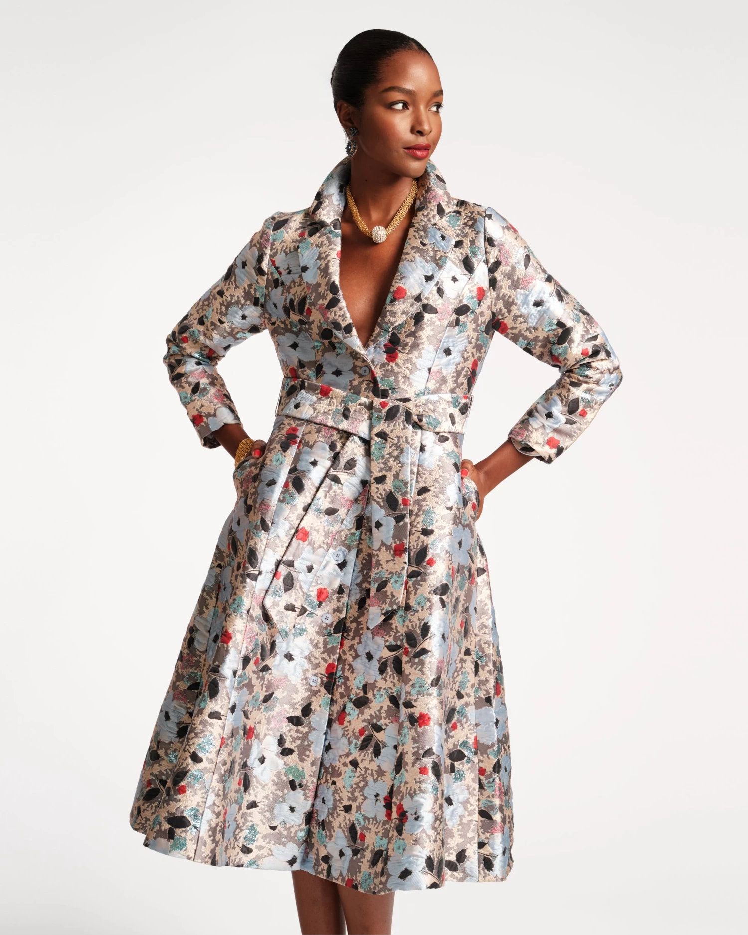 Inspired by Lucille Ballโs iconic dresses, the Lucille Wrap Dress in jacquard is a long-sleeve midi dress with a lapel collar, belted waist, and buttons down the front. This piece is uniquely versatile; wear it with or without bottoms, cinched in a bow, or left ribboned. Pairs beautifully with flats or heels for your favorite holiday dinner party.