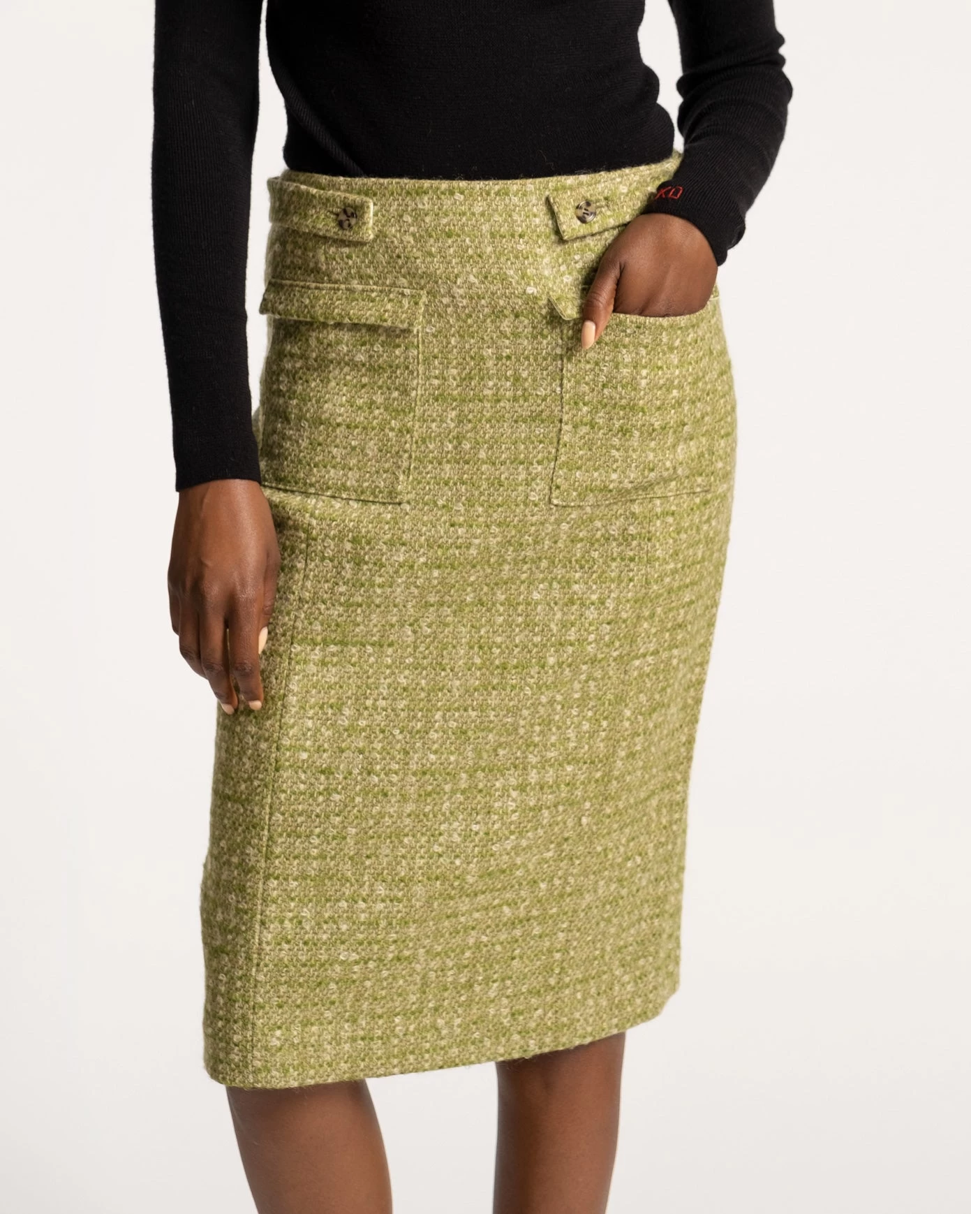 Soft to the touch, our new Wool Pencil Skirt features a fitted silhouette and two front pockets, a must for your fall wardrobe.