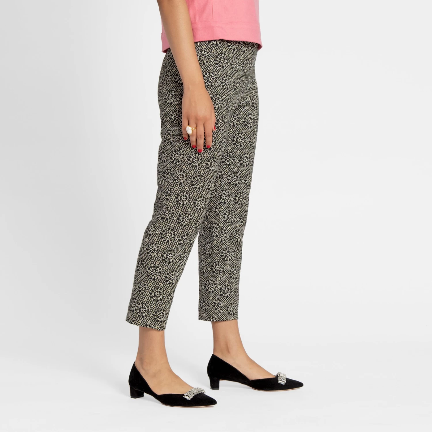 We love our Petrie Pants so much we had to make a version fit for a celebration! This spin on our best selling pant features metallic gold floral jacquard fabric. They are easy to throw on for a festive feel and pair well with everything.