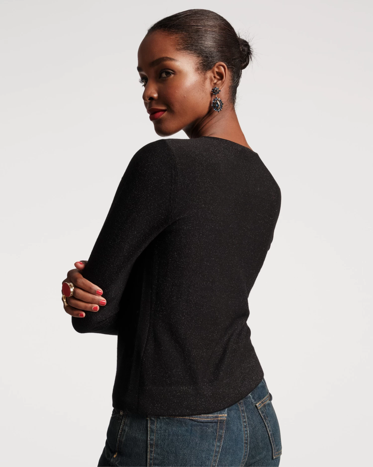Simple with a twist. Our Rebekah Top is a fitted, wide-neck, long-sleeve women’s top with ¾-style sleeves – elevated by subtly shimmery fabric. Fashioned under patterned coats or with statement jewelry, Rebekah gives you the glimmer you deserve in an everyday layer.