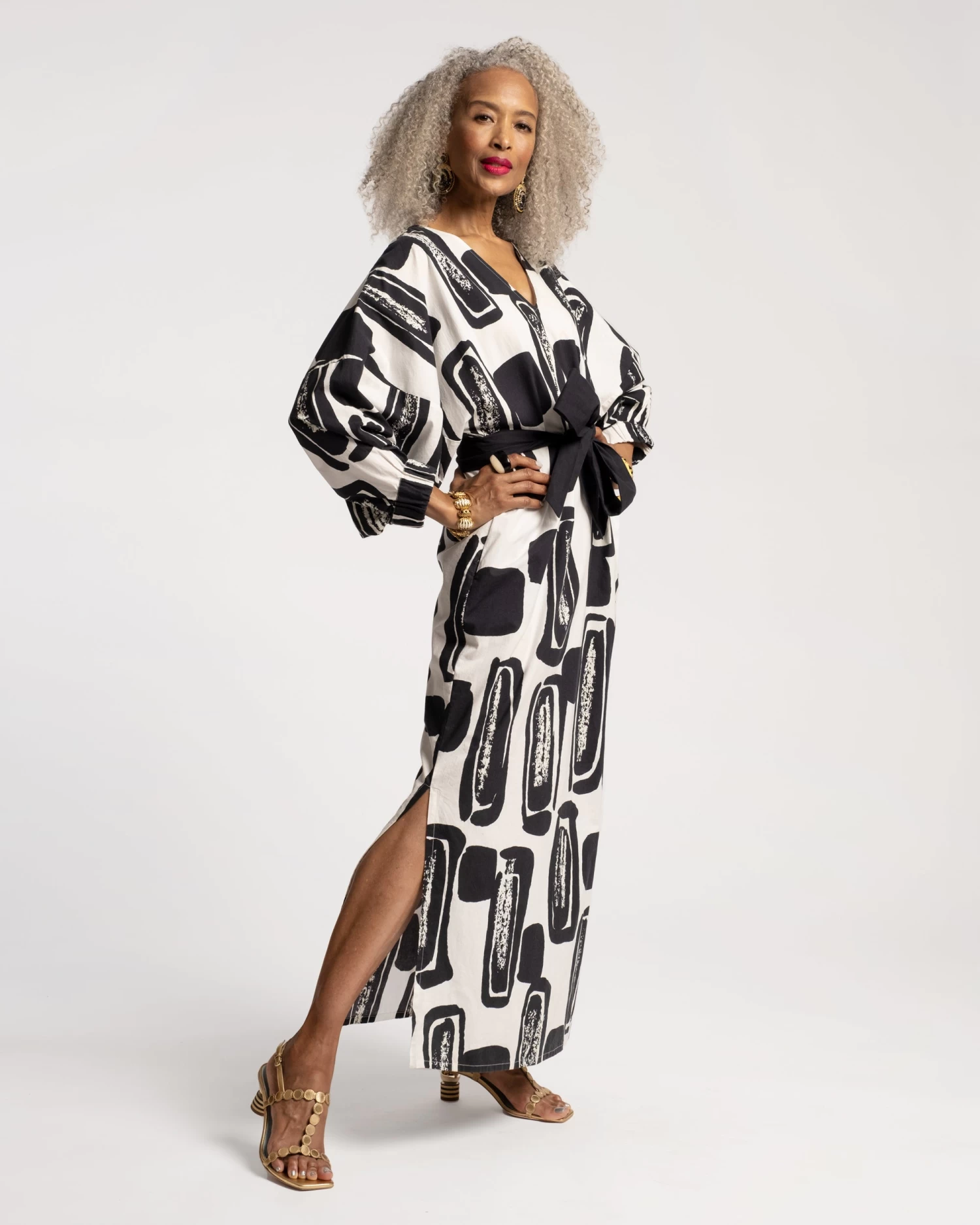 Our Rosa Caftan is an elevation of the traditional yet comfortable garment design we love for the changing seasons. Lightweight fabric with full-length coverage, this dress has balloon sleeves with elastic bands at the wrists and an adjustable belt at the waist for finding your preferred fit. Style up Rosa’s bold pattern prints with jewelry and a pop of color!