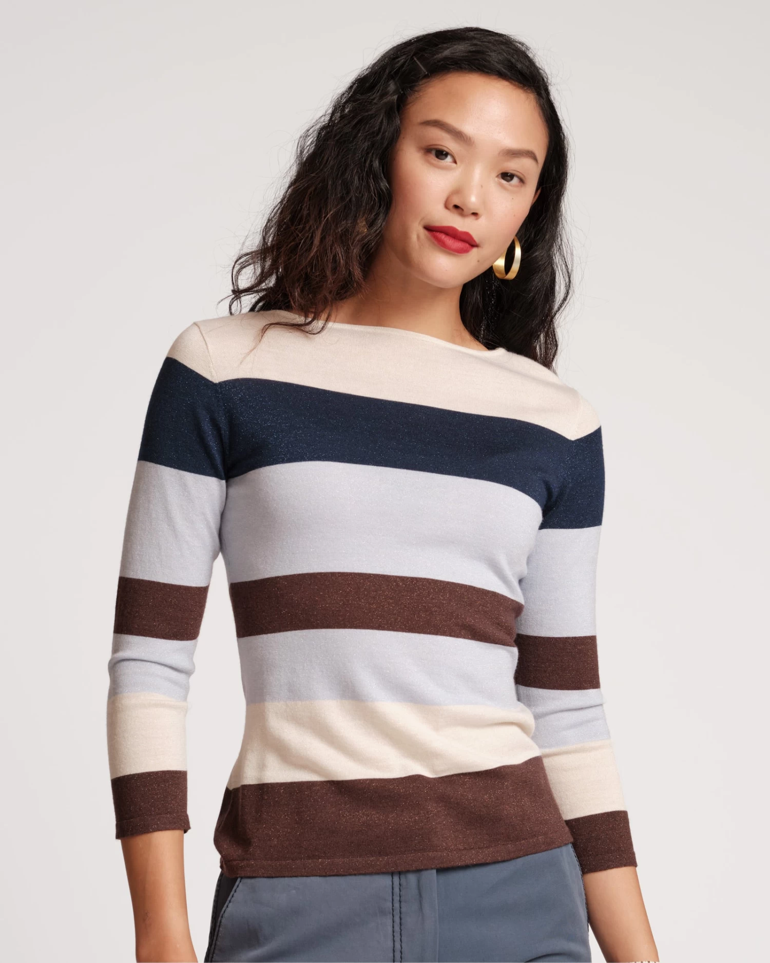 The Saylor Top is a long-sleeve crewneck inspired by our beloved, colorfully-knit Monaco dress – woven with a lightweight wool blend, featuring a subtle shimmer. This fitted layer is practical yet playful, making every outfit a bit brighter.