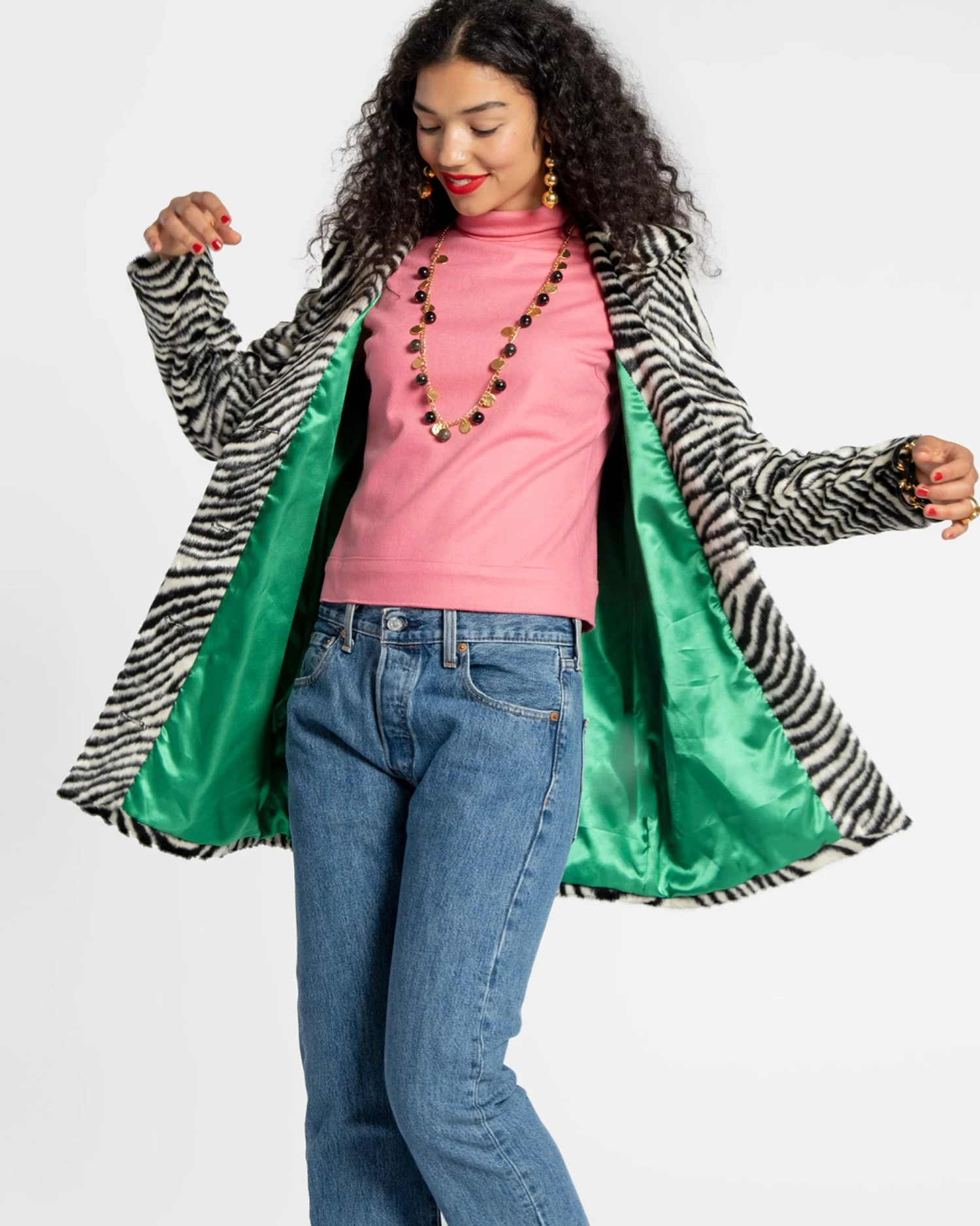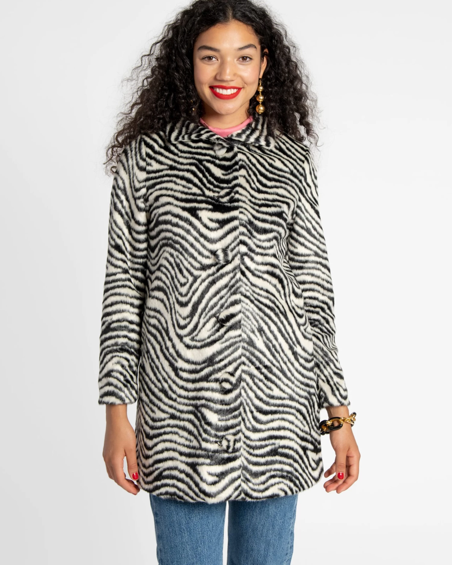 Instantly upgrade your wardrobe with our Sedgwick Faux Fur Car Coat in zebra, a jacket that offers luxurious warmth and style. Pair with any of our sweaters, a statement necklace, your favorite cropped denim, and a pair of boots to complete your look.