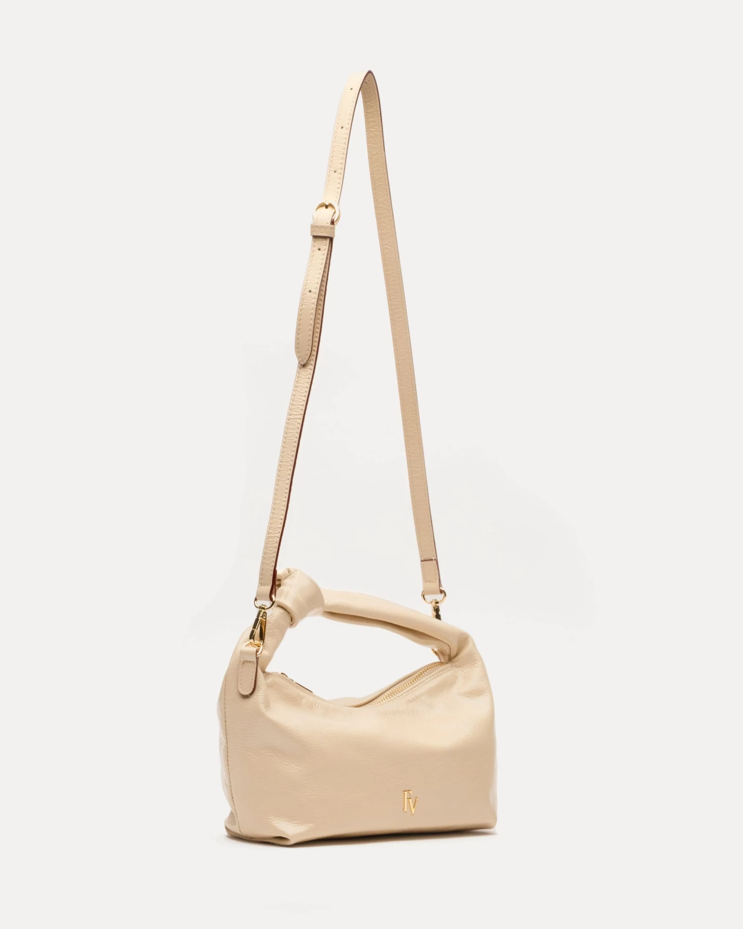 Naplak mini bag. Interior zip pocket. Cotton twill lining. Adjustable and detachable crossbody strap.