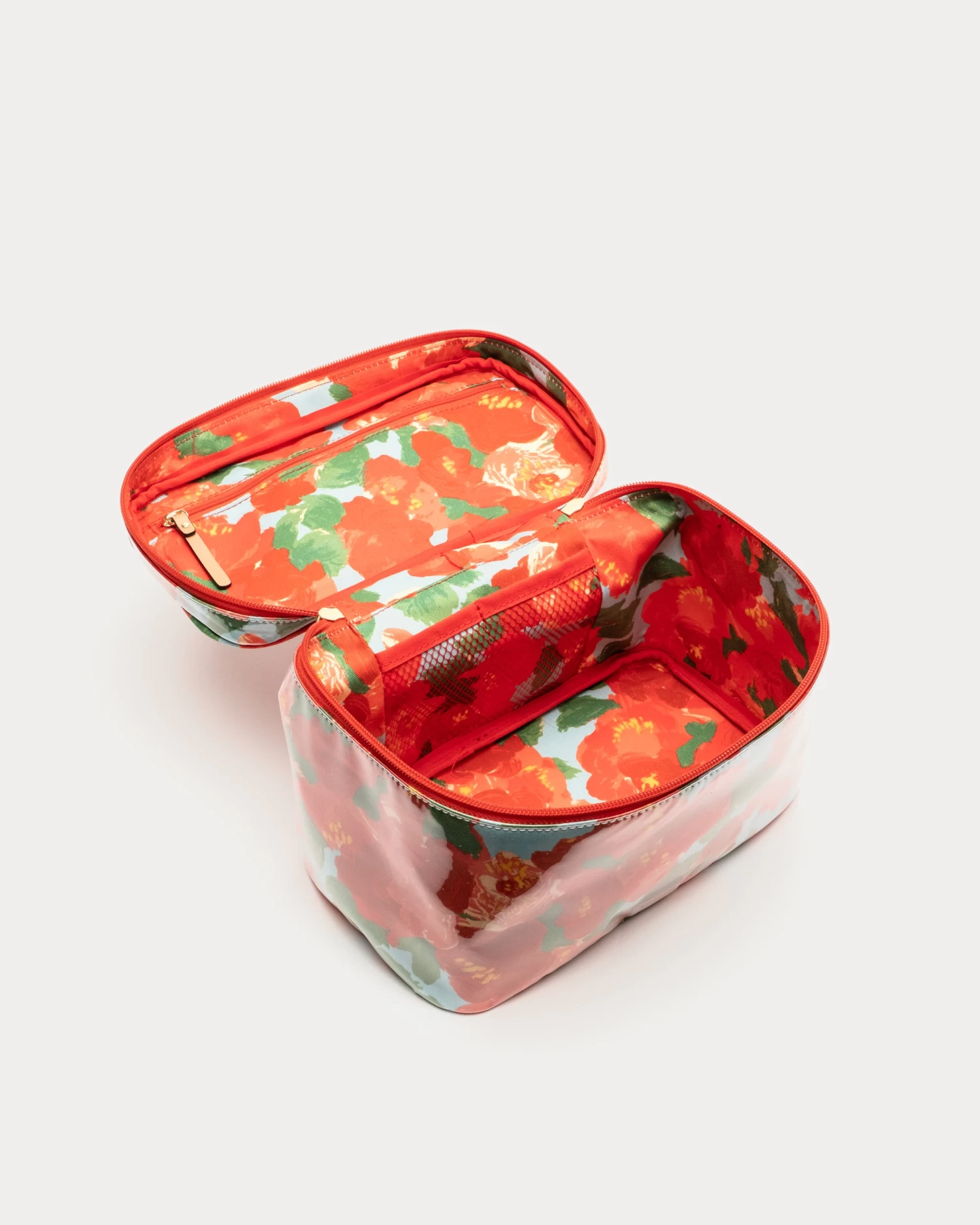 Our Train Case Cosmetic in custom FV Flower Power print is the perfect size for travel and or every day use!